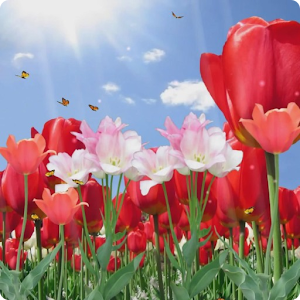 Watch some beautiful butterflies flying and dancing over an amazing flower field.This a great live wallpaper with butterflies flowing over tulips and colored flowers.