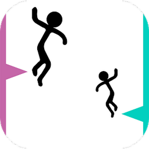 Stickman Fall:Two stickmen are falling freely and there are spikes in the way, make them jump to avoid spikes.