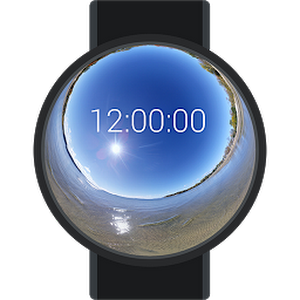 This watch face displays the PhotoSphere in the background.