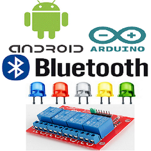 O aplicativo Arduino Bluetooth RC 4 Channels instalado no Smartphone com Android comunica com o bluetooth que está conectado à serial(mySerial) pino 2-RX e 3-TX do Arduino que recebe entes dados que por sua vez , interpreta e faz o comando do relé(placa de acionamento de relés) que está conectado na porta digital correspondente(Arduino pinos 4, 5, 6 e 7).